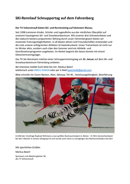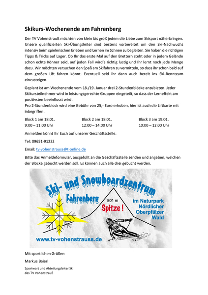 Links im Seitenverzeichnis finden Sie die Ausschreibungen für die kommenden Skirennen am Fahrenberg.
